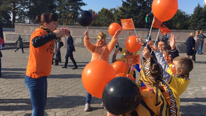 в городе проходил уже традиционный праздник – «День тигра». На площади Ленина студенты БГПУ оказывали