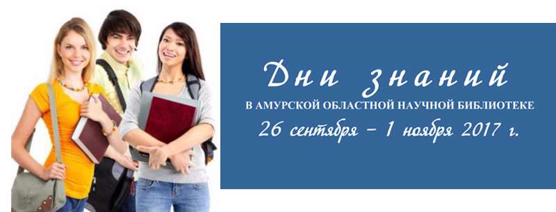 В период с 26 сентября по 1 ноября 2017 года Амурская областная научная библиотека проводит Дни знаний. Программа предстоящих мероприятий доступна по ссылке: http://www.bgpu.ru/newsfiles/4007_f1506404247609.pdf