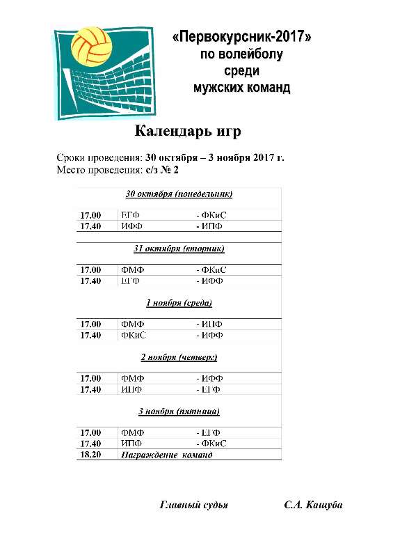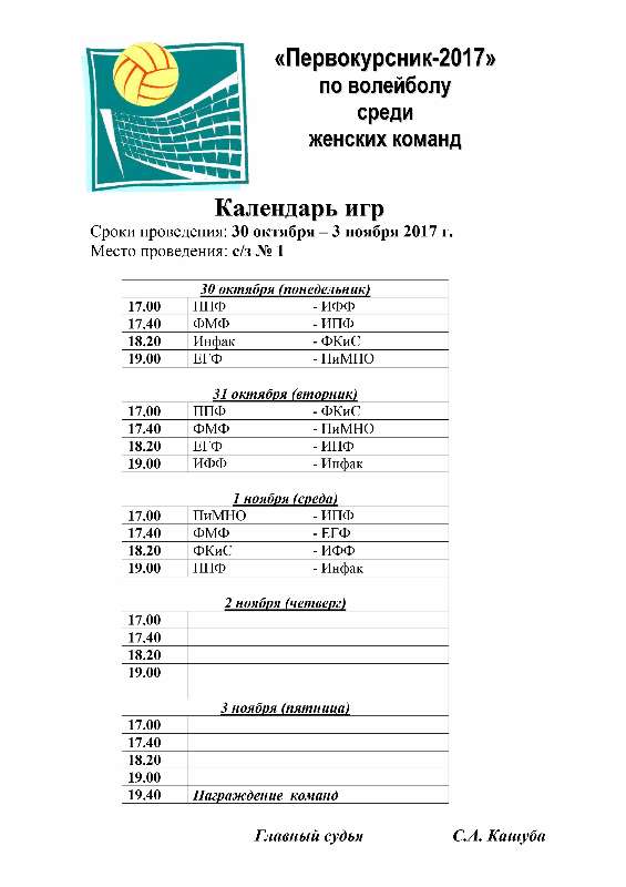 состоятся соревнования по волейболу среди первокурсников факультетов ФГБОУ ВО