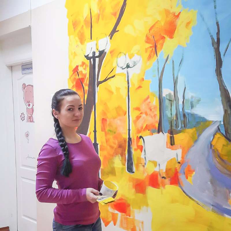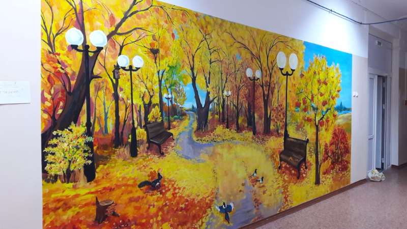 Студенты волонтёры индустриально-педагогического факультета Сидоренко Любовь, Бутина Софья, Кожарская Мария, Костарева Наталья, Булаева Виктория под руководством доцента кафедры Дроздова Сергея Анатольевича оформили холл кардиологического отделения детской областной больницы монументальной росписью.