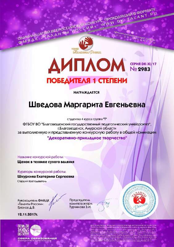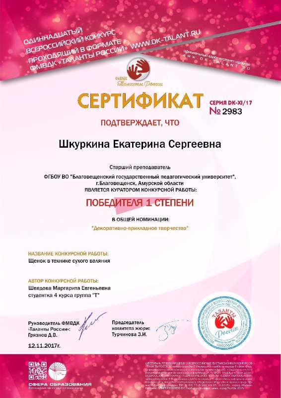 степени. Куратором конкурсной работы являлась Шкуркина Екатерина Сергеевна,