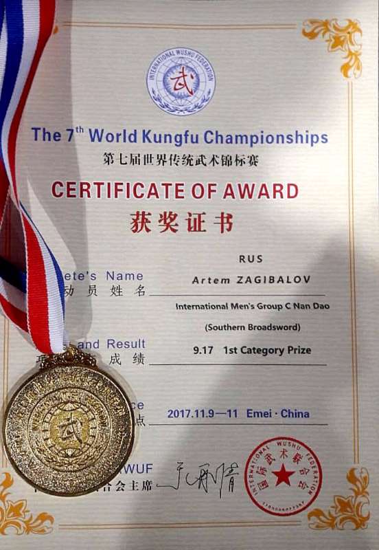 7-й чемпионат мира по традиционному ушу состоялся 9-11 ноября 2017 г. в китайском городе Эмэйшань провинции Сычуань, в котором принимали участие 1500 спортсменов из 80 стран. Артем завоевал титул чемпиона мира по виду программы "традиционное наньдао", а в другом виде программы - "подражание тигру" - занял 2-е место.