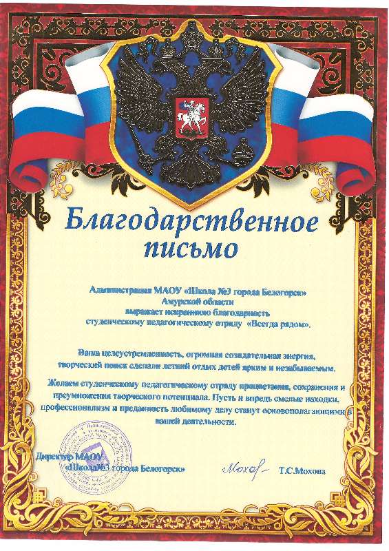Амурское отделение РСО и отдел по внеучебной работе выражают благодарность администрации университета, центру профориентации и содействия трудоустройству выпускников за содействие в трудоустройстве педагогических отрядов.