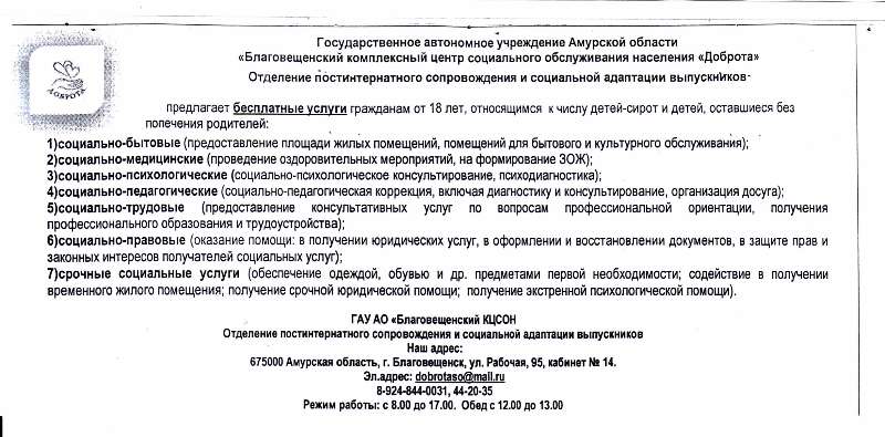 29 ноября состоялась информационная встреча обучающихся БГПУ с сотрудниками Благовещенского комплексного центра социального обслуживания «Доброта». Специалисты отделения постинтернатного сопровождения и социальной адаптации, рассказали о специфике работы центра «Доброта», а также о том, какую помощь студентам могут оказать его работники. После выступления гостей, студенты смогли задать интересующие их вопросы и получить юридическую консультацию.