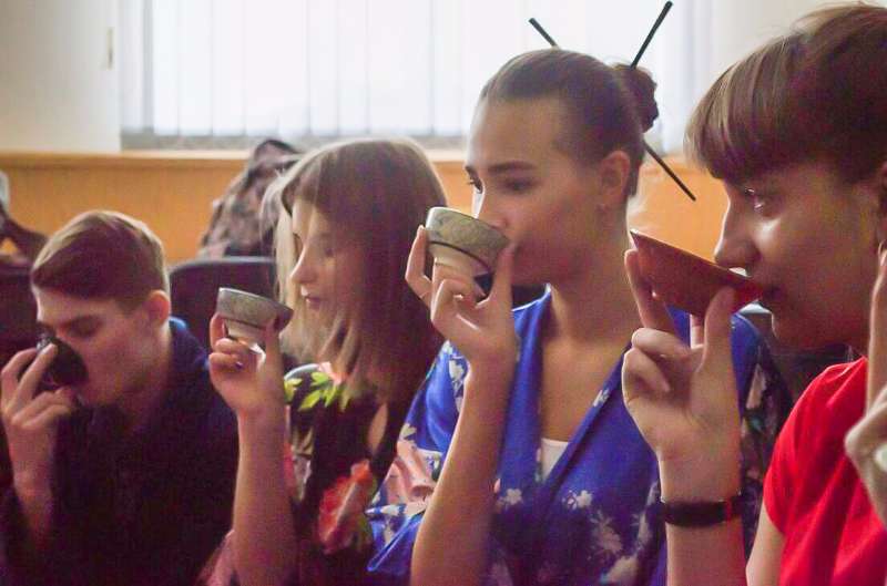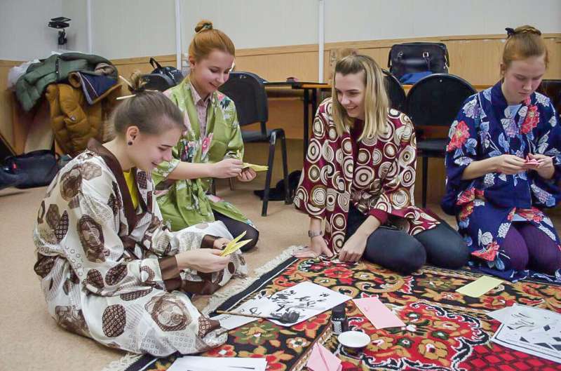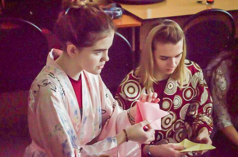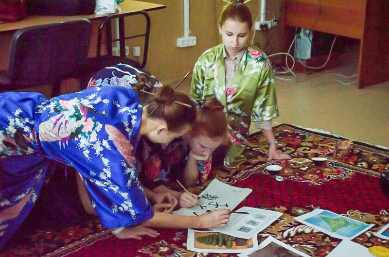 1 декабря в 11 классе Лицея БГПУ состоялся нетрадиционный урок географии. Ребята познакомились с культурой, обычаями и традициями страны восходящего солнца. Они послушали легенды о ее происхождении, организовали церемонию чаепития по-японски, занимались каллиграфией. Каждый из ребят сделал бумажного журавлика в технике оригами. Все - и дети, и учитель попытались преобразиться в японцев: подготовили и надели традиционные японские костюмы. Девочки сделали оригинальные прически. Атмосферу урока дополняли мелодии японской музыки. Ребята благодарят от всей души учителя географии Ульянову Валентину Владимировну за оригинальное и интересное занятие!