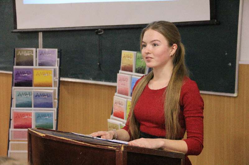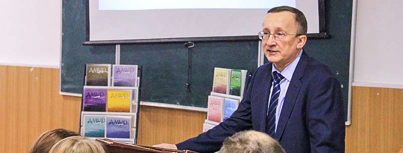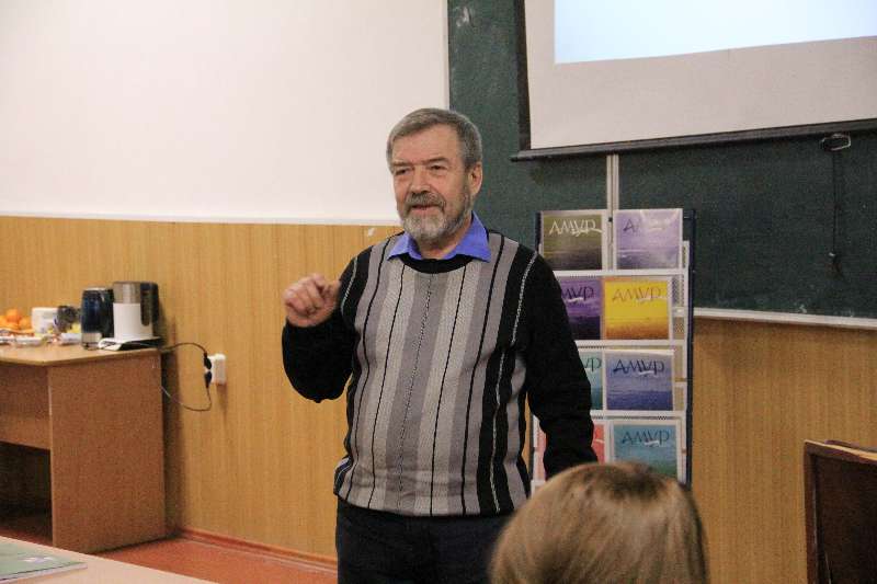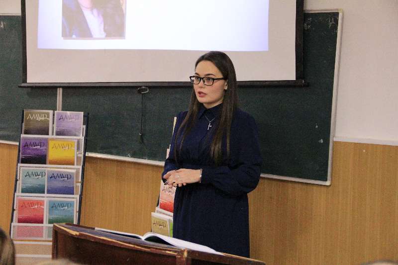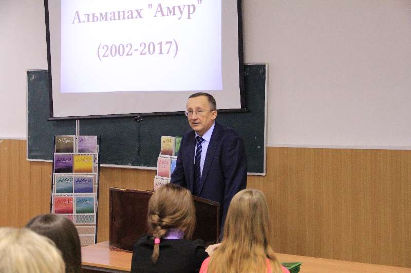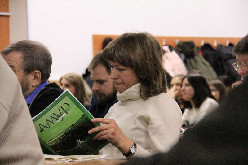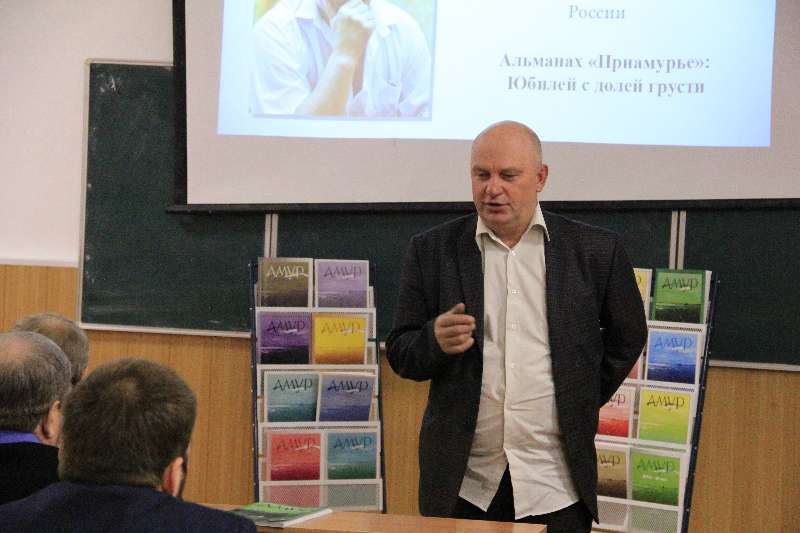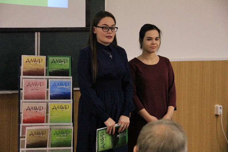 Участники мероприятия смогли познакомиться с пятнадцатилетней историей альманаха благодаря вступительному слову гл. редактора, профессора А. Урманова. Вести презентацию ему помогала зам. гл. редактора, профессор Н. Киреева. Первый номер был представлен читателям в декабре 2002-го, то есть альманах выходит с завидной регулярностью вот уже 15 лет! Стоит отметить, что «Амур» – единственное в России периодическое издание подобного рода (издаваемое вузом), что в 2007-м оно было признано «Лучшим издательским проектом года» Амурской области, а в 2016-м удостоено диплома и золотой медали на выставке «Амурские книжные берега».