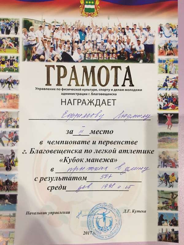 60 м., Крачковская Карина 3 место в беге на 60 м., Ефремова Людмила 3 место в