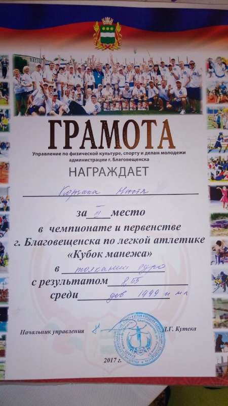 прыжках в длину с разбега, Корчака Анастасия 3 место в толкании ядра и Кузнецов