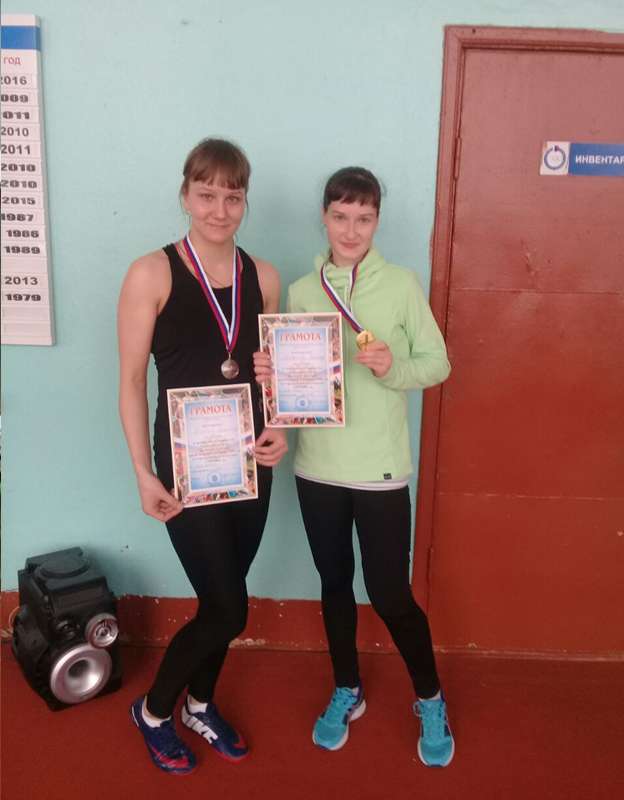 Ефремова Людмила (3 место), Корчака Анастасия (2 место) в толкании ядра.