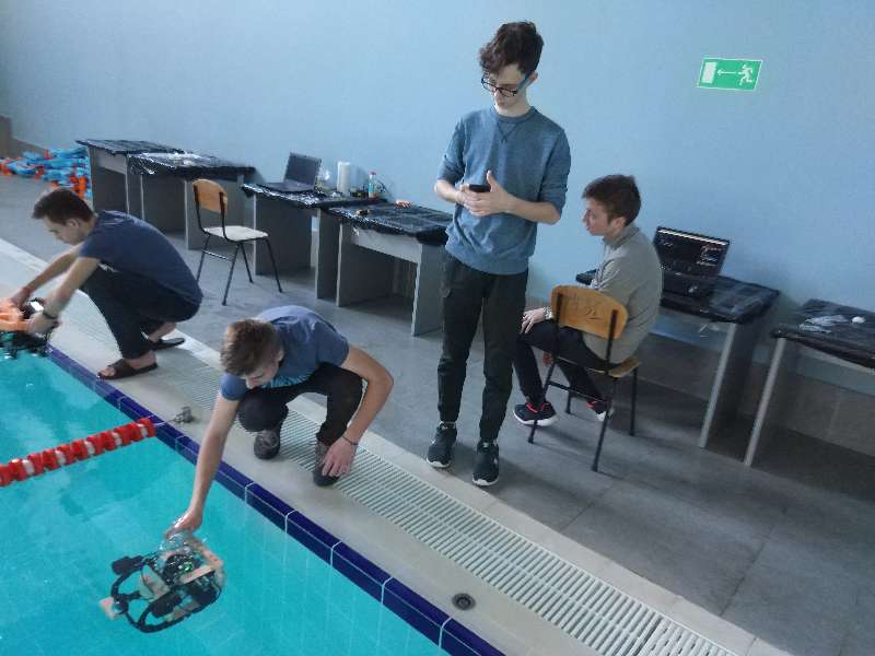 Учащиеся 10 класса Лицея БГПУ Русинович Андрей, Кривега Владислав, учащийся 9 класса МБОУ СОШ №12 Сидоров Всеволод, а также директор ДНОЦ БГПУ Коломыцын Евгений смогли поработать на реальном оборудовании и попробовать выполнить подводные задания в бассейне. Участники хакатона собрали и запрограммировали своих автономных подводных роботов, используя конструктор MUR, и апробировали созданные алгоритмы в бассейне.
