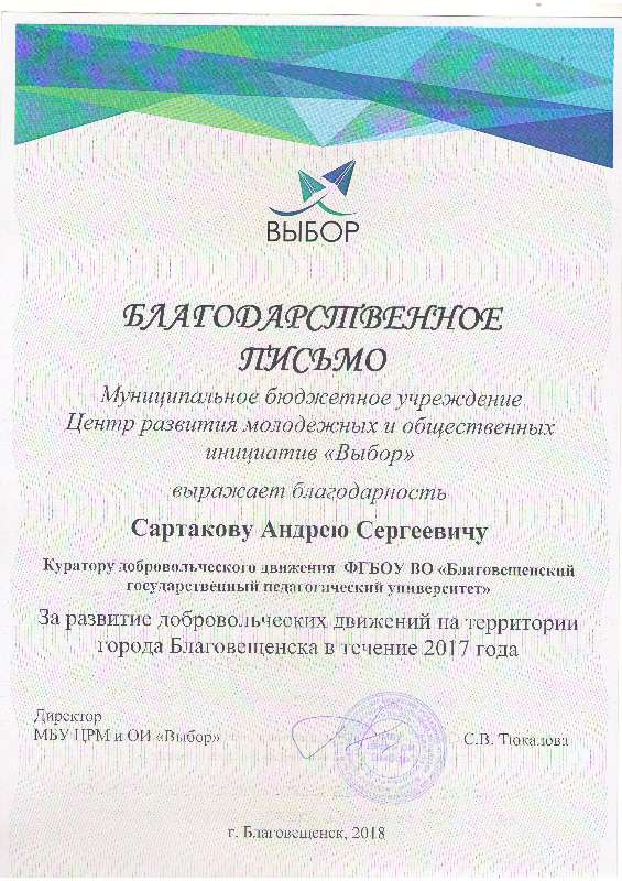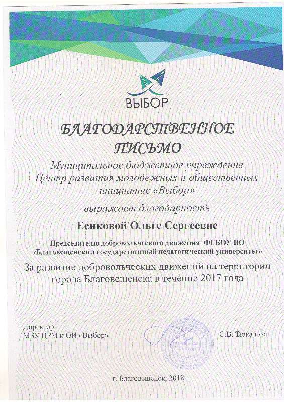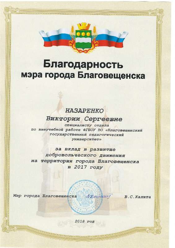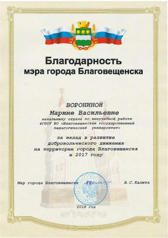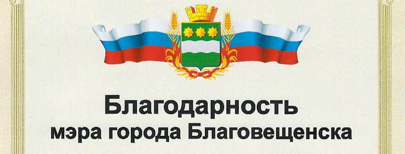 благодарности от мэра г. Благовещенска и благодарственные письма от Центра