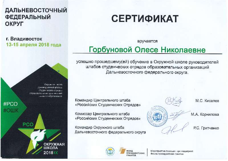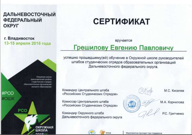 сертификаты об успешном прохождении программы школы. Грешилов Евгений стал