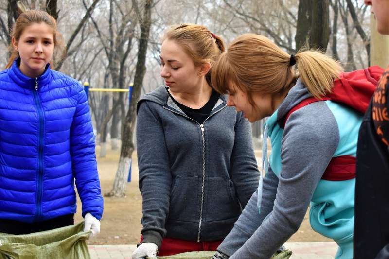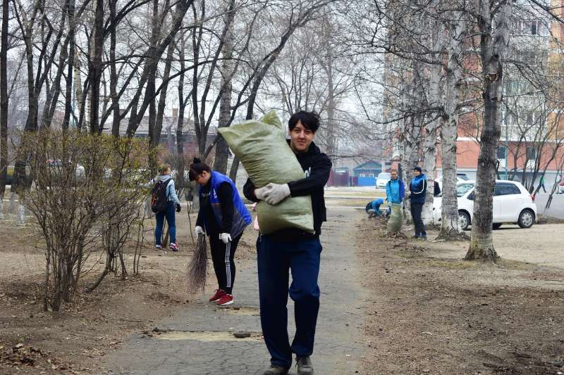 На прошлой неделе студенты БГПУ приняли участие в двух акциях по уборке территорий города. Первый субботник прошёл 20 апреля в Парке Мира. В рамках поручения губернатора Амурской области Александра Козлова, за студенческими отрядами закреплено шефство над парком Мира, который расположен на пересечении улиц Б. Хмельницкого и Красноармейской. Каждую весну и осень студенты принимают участие в его благоустройстве, очистке газонов от листвы и побелке деревьев. 20 и 21 апреля в рамках акции «Чистый город» администрация Общественно-культурного центра обратилась с просьбой оказать помощь в уборке детского оздоровительного лагеря им. Ю.А. Гагарина, где уже летом наши студенты отработают свой летний трудовой семестр. Студентов доставили до лагеря на автобусе, напоили сладким чаем. А они навели порядок, сгребли листву и ветки. Комсостав штаба студенческих отрядов БГПУ благодарит всех бойцов отрядов за помощь!