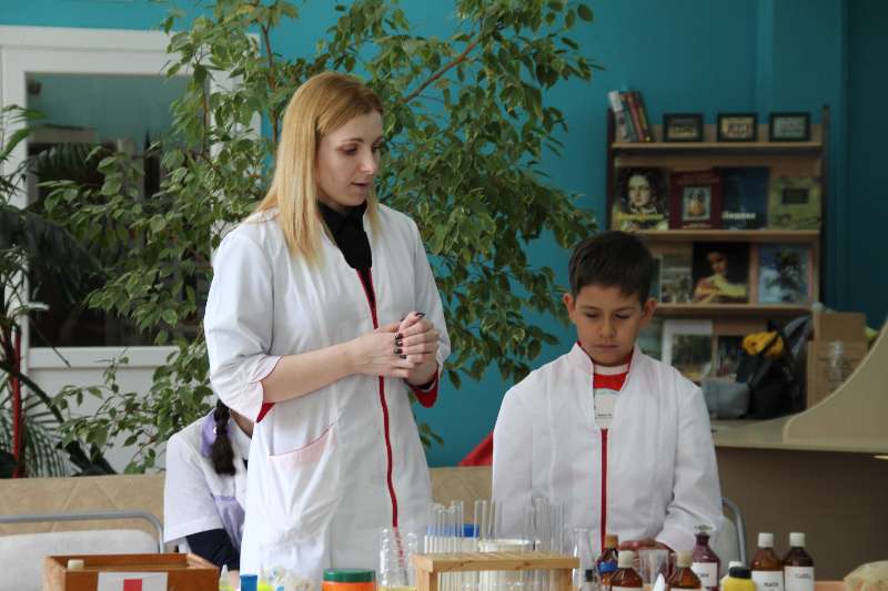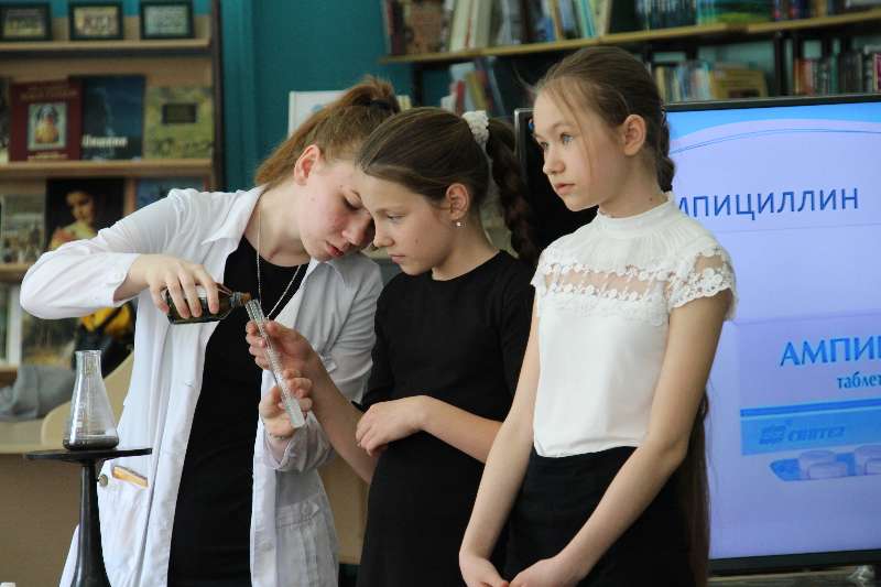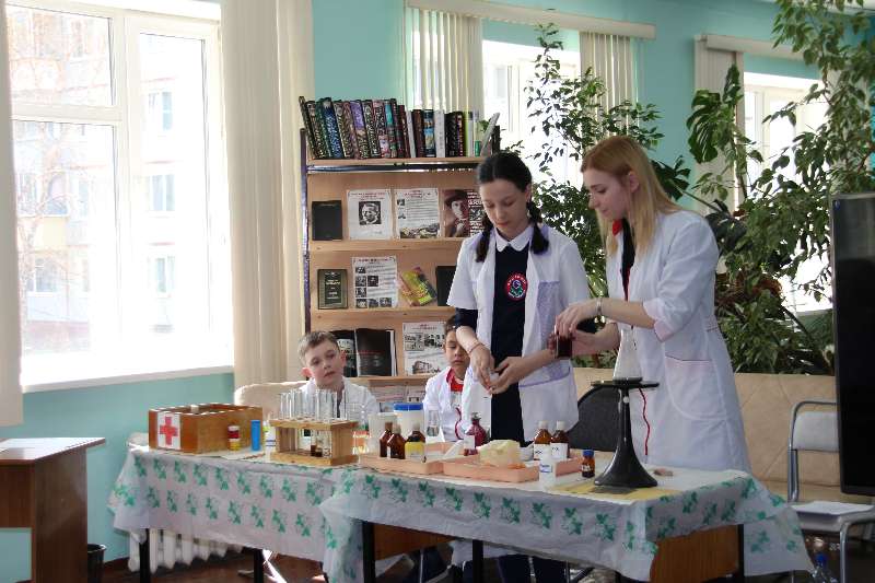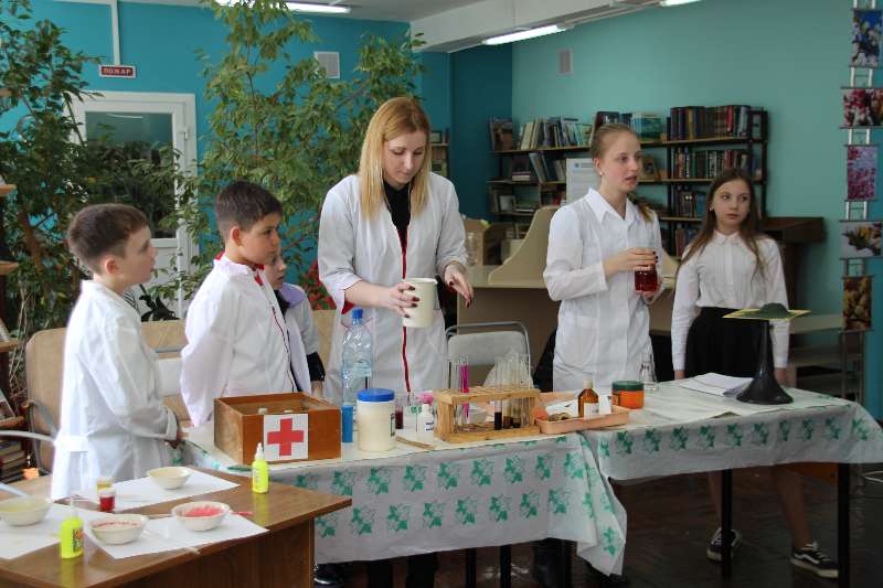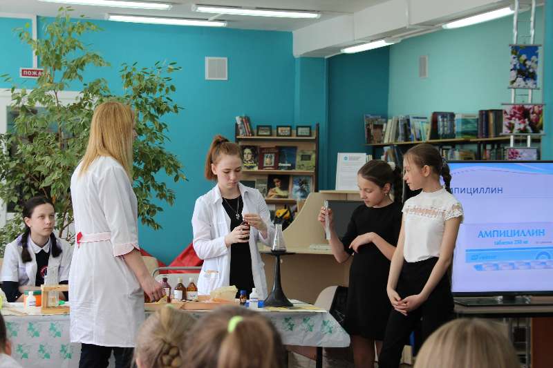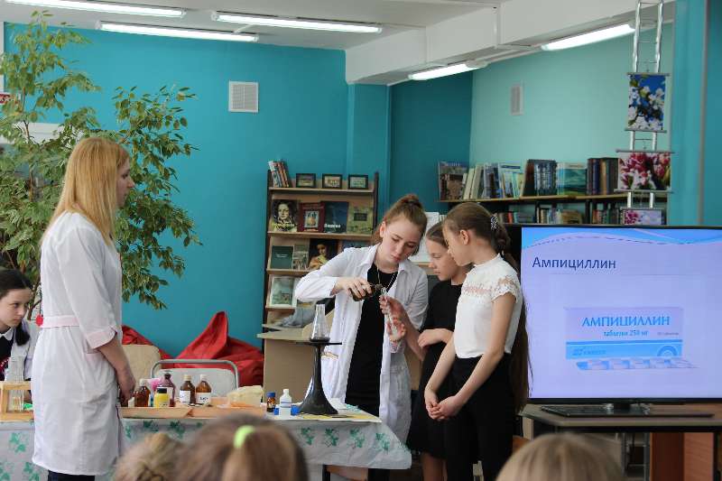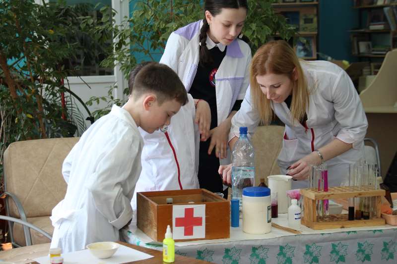 кружке «Юный химик», показали учащимся занимательные опыты «Химия в аптечке».