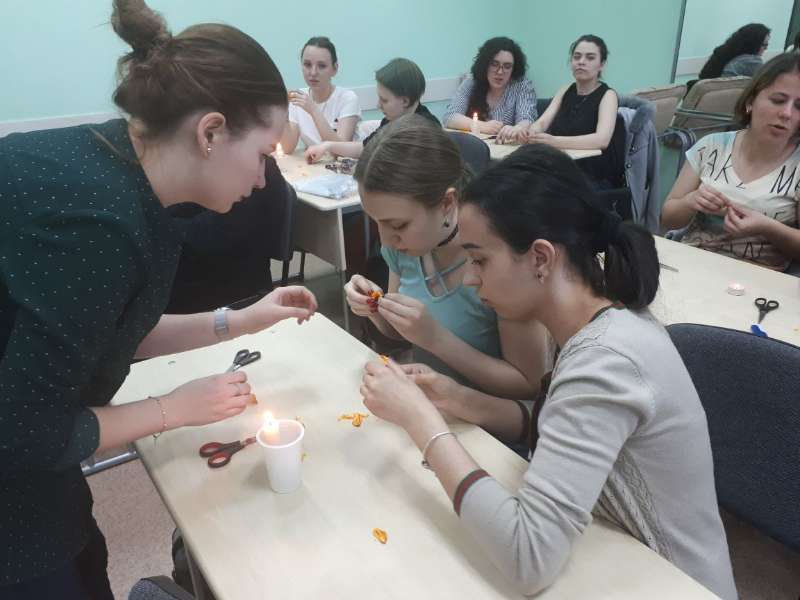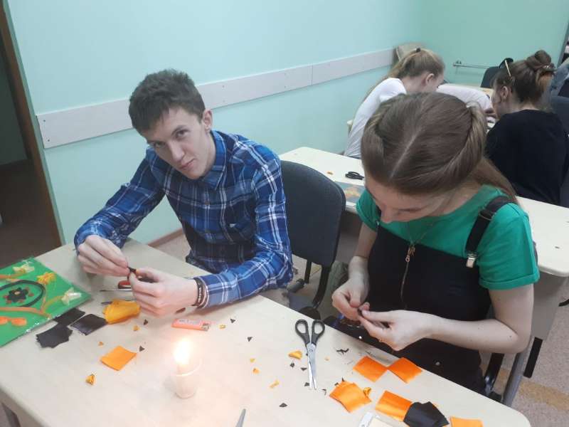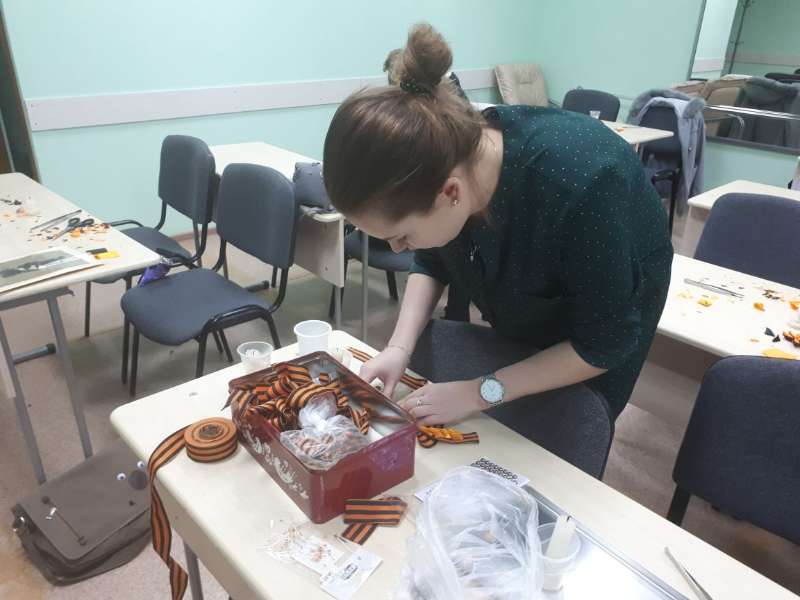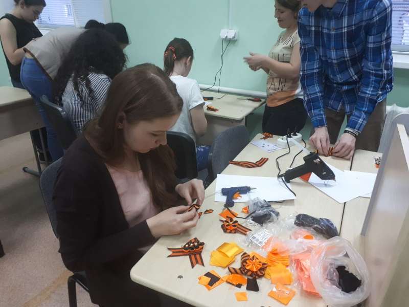 Георгиевская лента - символ Победы, цвета которого обозначают: черный цвет – это дым, а оранжевый – пламя. Черный и оранжевый цвета сегодня воплощают воинскую доблесть, славу. В мастерской участвовали слушатели ОДПП "Прикладное искусство" и студенты 1-2 курсов индустриально-педагогического факультета. Студенты выполнили георгиевскую ленточку в технике "цумами канзаши". Ленточки получились у всех разные, но каждый внес в них тепло и доброту. Творческая мастерская проходила в рамках благотворительной акции "Сувенир для ветерана", авторами которой являются студенты индустриально-педагогического факультета, бойцы СПО "Мастера добра".