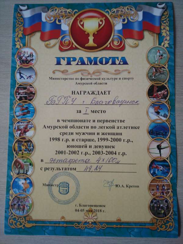 в эстафетном беге 4*100 метров команда ФГБОУ ВО «БГПУ» заняла 1 место.