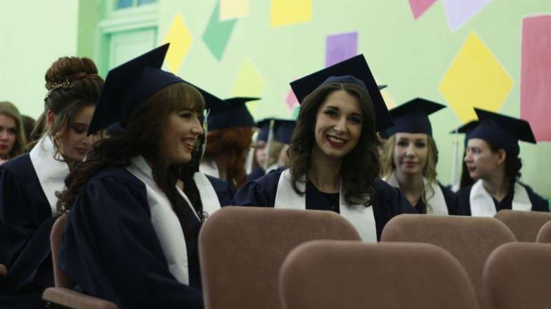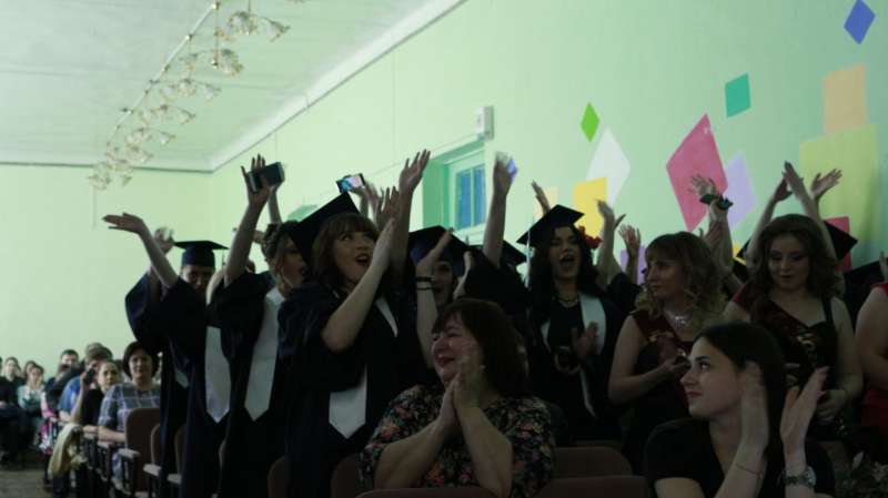 необычной форме. Гости, преподаватели и выпускники попали в Зазеркалье. Много