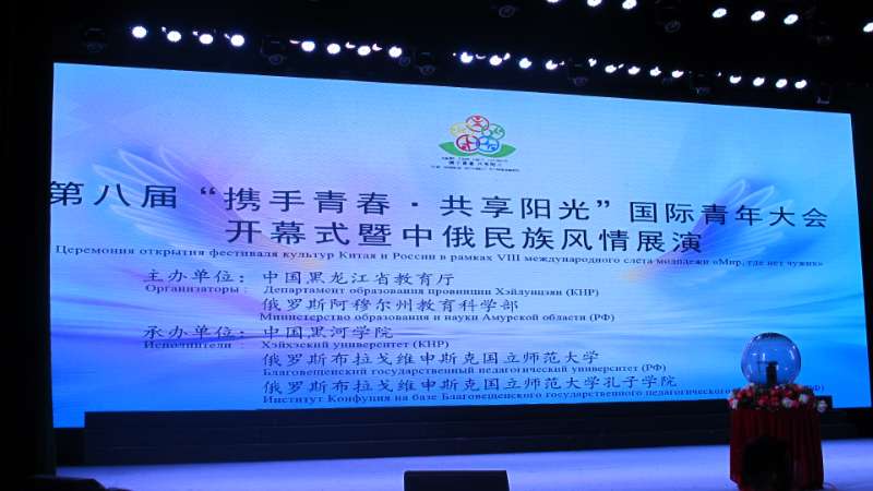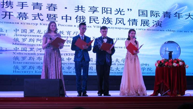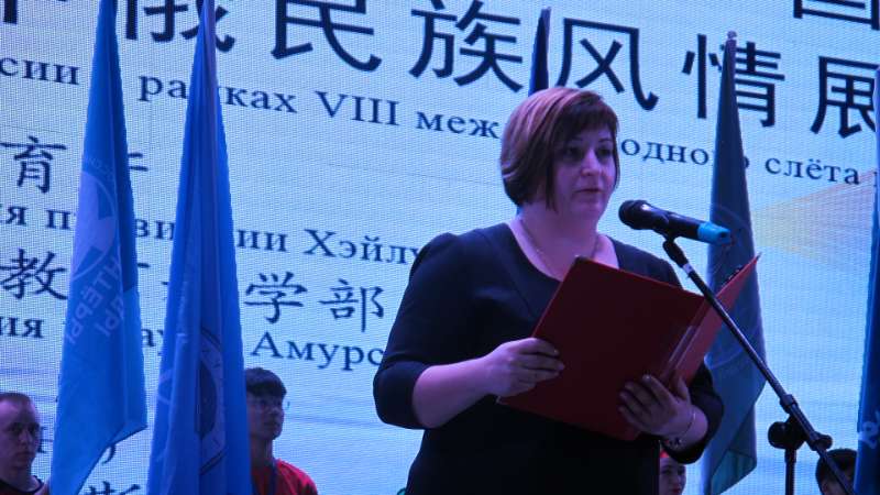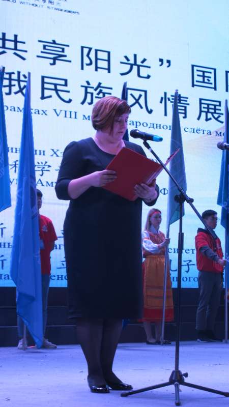 14 мая состоялось торжественное открытие Международного слета молодежи «Мир, где нет чужих». С приветственной речью к гостям из Благовещенска и студентам Хэйхейского университета выступили: Селезнева Ольга Владимировна, проректор по дополнительному образованию и социальным вопросам и проректор Хэйхейского университета, где говорилось о дружбе двух народов и взаимодействии России и КНР на базе двух университетов - БГПУ и Университет г Хэйхэ