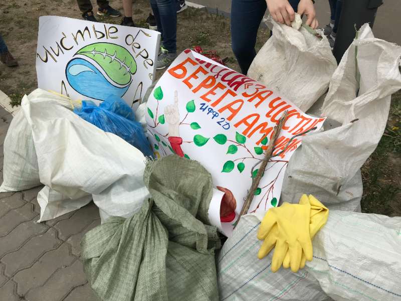 акцию «за чистые берега Амура» . «Вооружившись» перчатками и