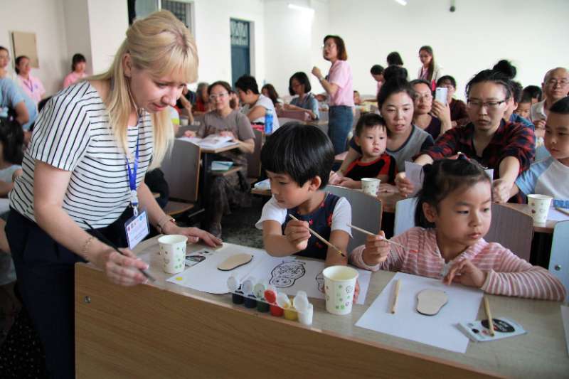 управления и технологии, с китайскими детьми 5-6 лет расписывала деревянные