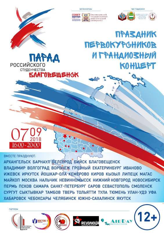 Под таким лозунгом пройдет Парад Российского студенчества в г. Благовещенск, организованный Советом проректоров по