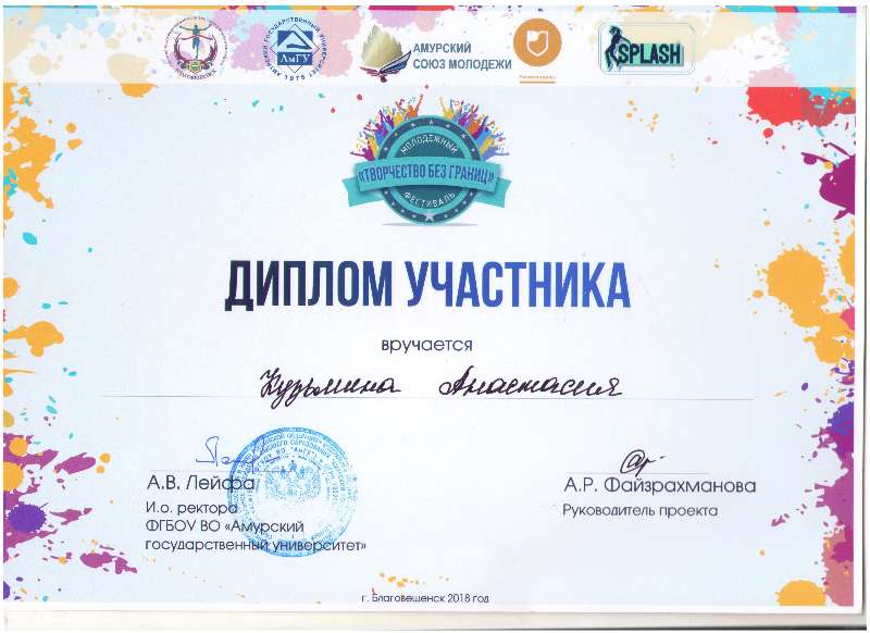 С 14 по 16 сентября санаторий «Василек» открыл свои двери сотне участников самого творческого межвузовского события 2018 года. Фестиваль проводился за счет средств гранта Росмолодежи, который выиграл танцевальный коллектив «SPLASH», а организаторами мероприятия выступили Амурский государственный университет, а также Управления по физической культуре, спорту и делам молодежи администрации города Благовещенска.