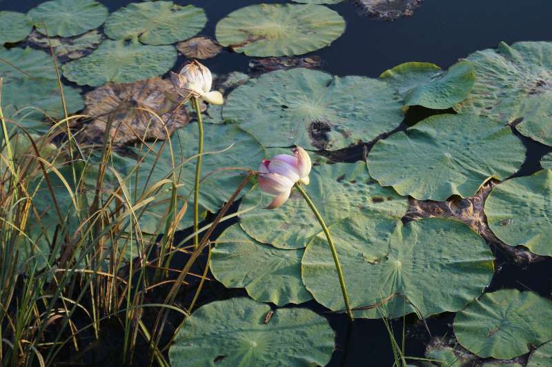 экскурсию по берегу озера, рассказывая о лотосе как и о обитателе