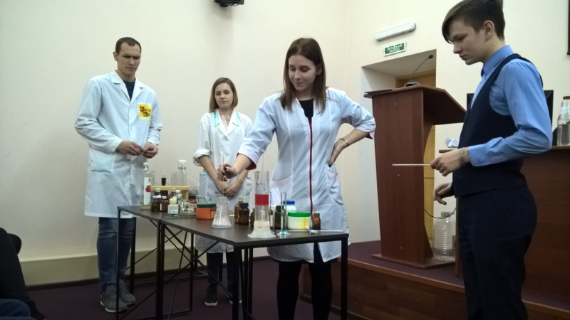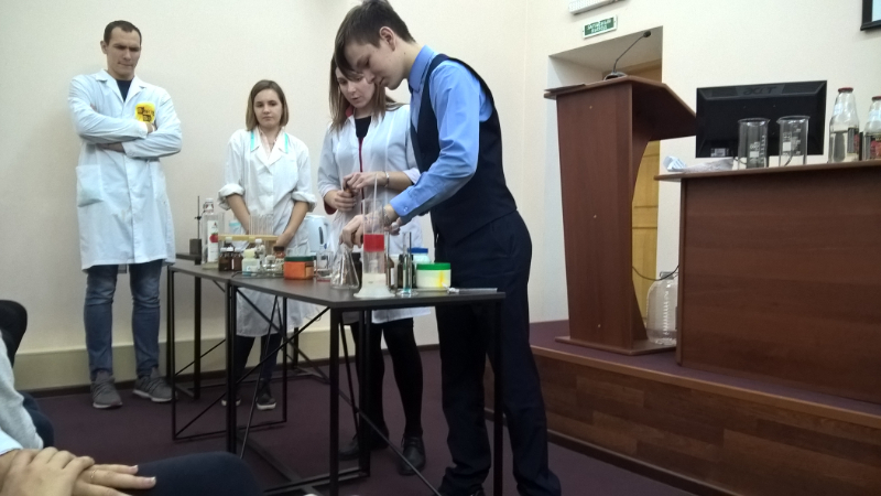 Ребята провели увлекательные опыты «Феерия воды» для учащихся 8-х классов.