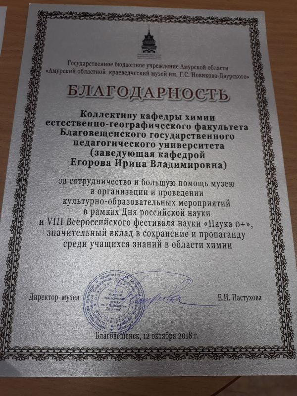 Благовещенска в рамках Всероссийского фестиваля науки «Наука +» прошел