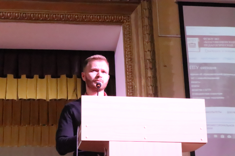 18 октября в 9.40 в актовом зале БГПУ традиционно прошло мероприятие для первокурсников «Диалог с ректором». В рамках встречи администрация вуза ответила на интересующие студентов вопросы, недавно пополнивших большую студенческую семью БГПУ. Вопросы от студентов звучали по разным направлениям, а компетентность сотрудников вуза позволила услышать целевой аудитории развернутые ответы.