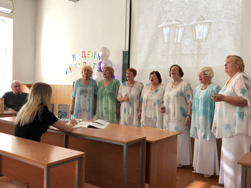 Литературную гостиную хор ветеранов «Вдохновение», проникновенно исполнивший