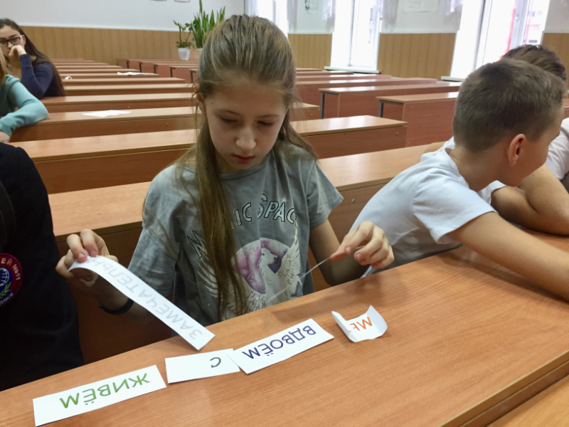 станции, ребята должны были составить из них фразу из известного стихотворения