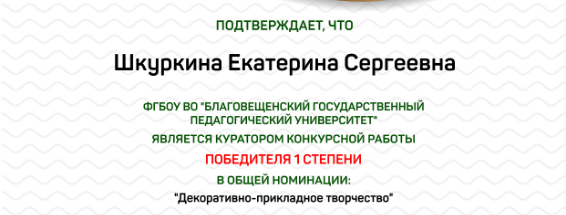 диплом победителя 3 степени. Куратором конкурсных работ являлась Шкуркина