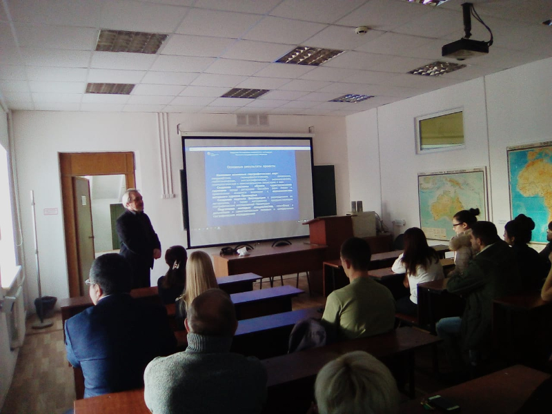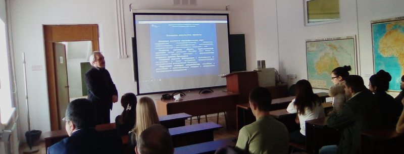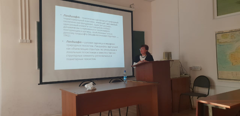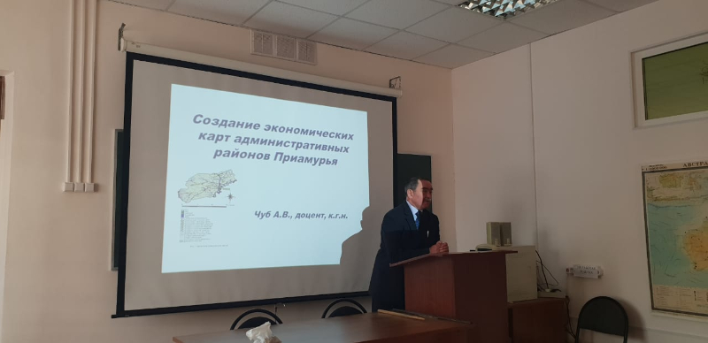 28 ноября в рамках Недели географии состоялось внеочередное собрание Амурского регионального отделения Русского географического общества, на котором был представлен полевой отчет Амурской бассейновой комплексной экспедиции Русского географического общества. Отчет представили председатель Амурского отделения РГО – Илларионов Г.В. с докладом «Амурская комплексная экспедиции РГО»; к.г.н. с.н.с Амурского филиала Владивостокского ботанического сада-института ДВО РАН Борисова И.Г. с докладами «Результаты геоботанических исследований Приамурья», «Ландшафтные карты Амурской области М 1:500000»; к.г.н., доцент кафедры географии БГПУ Чуб А.В. с докладом «Разработка социально-экономических карт административных районов Амурской области». Студенты и преподаватели кафедры географии узнали много новой и интересной информации по краеведческим исследованиям.