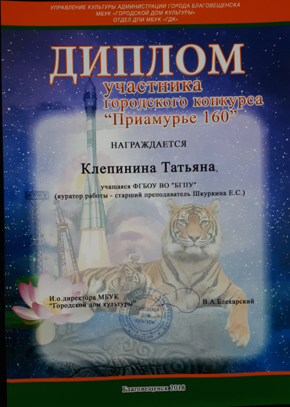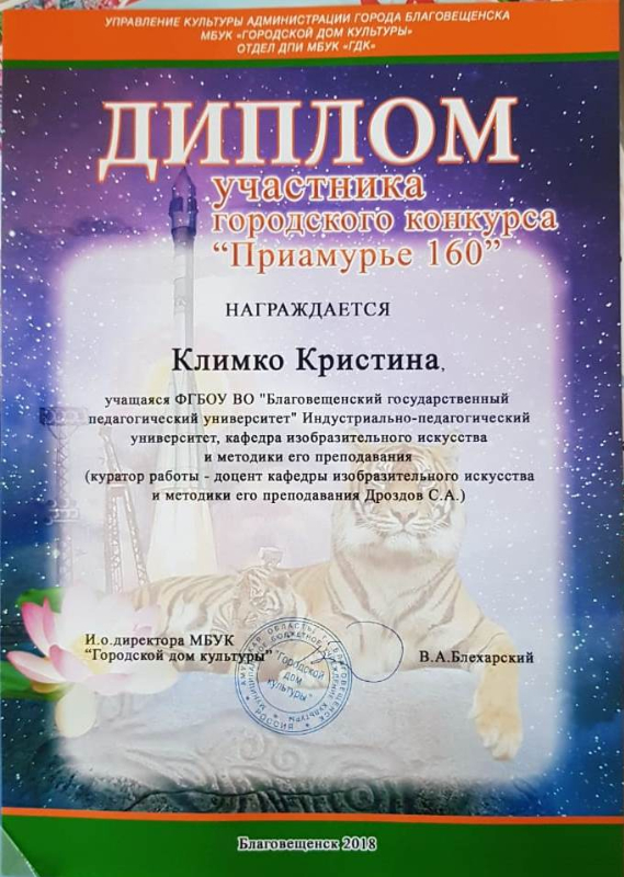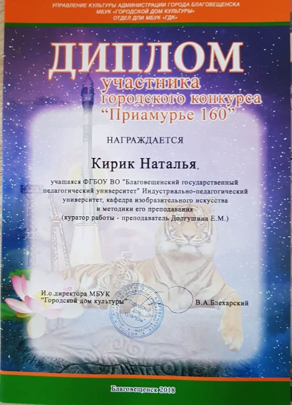 художественного и декоративно-прикладного творчества «Приамурье 160» которая