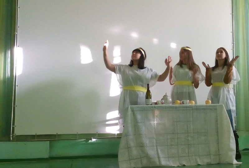 на факультете педагогики и методики начального образования состоялся конкурс сценического мастерства на тему: «Мифы Древней Греции» Гера, Афина и Афродита делили яблоко раздора. Кому оно досталось узнали студенты БГПУ в понедельник, 3 декабря. Именно в этот день в стенах вуза состоялся конкурс театральных миниатюр, посвященных древнегреческой мифологии. Студенты 3-го курса ПиМНО подготовили и показали в рамках открытия недели культурологии 5 миниатюр: «Кипарис», «Нарцисс», «Похищение Елены», «Яблоко раздора» (зрителям было представлено два варианта постановки). Лучших из лучших выбирало студенческое жюри по следующим критериям: режиссерский замысел, уровень исполнительного мастерства, музыкальное оформление, костюмы и декорации. Первое место заняла миниатюра «Яблоко раздора», подготовленная студентами отделения психологии и педагогики начального образования. Второе - миниатюра о Кипарисе, а третье получила постановка мифа о Нарциссе. В номинации «Лучшая роль» победила студентка третьего курса - Зайцева Марина, а номинацию «Оригинальность сценического замысла» получил СТЭМ «Похищение Елены». В финале мероприятия студенты отметили, что всем очень понравилось и высказали пожелания сделать его традиционным.