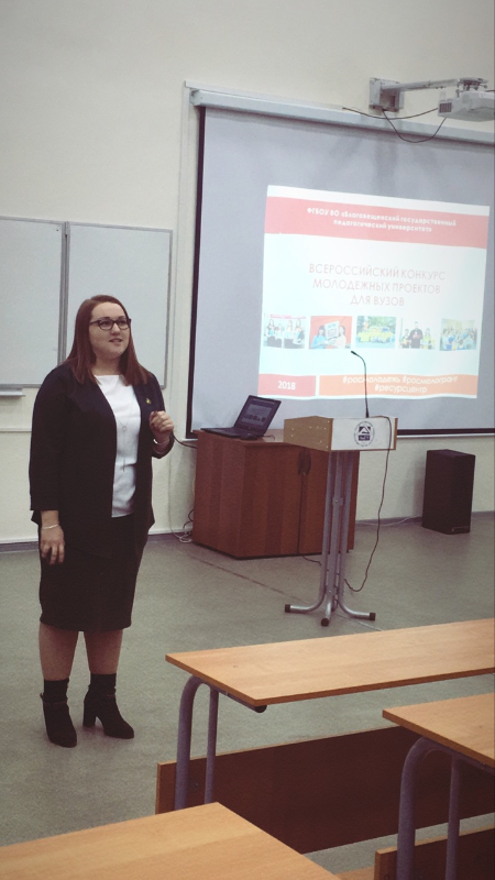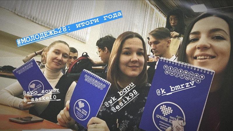 21 декабря на базе Амурского государственного университета стартовал областной молодежный слет #Молодёжь28: итоги года. Участников слета приветствовал заместитель председателя Амурского правительства Андрей Плутенко. Программа форума включала в себя подведение итогов работы за 2018 год. Как было отмечено начальником отдела молодёжной политики министерства образования и науки Амурской области Ивановым В.Н., в этом году в Амурской области проведено 20 крупных региональных и межрегиональных молодежных форумов, и фестивалей, в которых приняли участие 6,5 тысяч человек. По сравнению с предыдущим годом количество крупных молодежных мероприятий областного и межрегионального уровня, проводимых на территории Приамурья, выросло в три раза, а охват молодежи увеличился в почти в четыре раза. Каждый год молодежь Амурской области заявляет о себе не только на региональном, окружном, но и всероссийском уровнях. В 2018 году амурская молодежь приняла участие в 7 всероссийских конкурсах молодежных проектов Федерального агентства по делам молодежи. Всего подано 107 заявок, из которых 20 проектов, в числе которых проекты нашего вуза и его преподавателей и сотрудников. Начальник отдела по внеучебной работе, старший преподаватель кафедры педагогики Воронина Марина Васильевна презентовала итоги реализации не только своего проекта конкурса вожатского мастерства «Вожатский бумеранг», но и проекты нашего вуза. В числе делегации вуза на слёте также присутствовали специалист отдела по внеучебной работе Боймирзоева К.Б. и студенты БГПУ – председатель волонтёрского корпуса Есикова Ольга (ППФ), комиссар СПО «СОЮЗ» Желтоножко Александра (ПиМНО).
