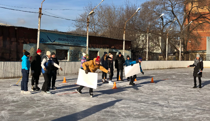 Закончились новогодние каникулы, которые каждый проводил с учетом своих предпочтений. С пользой для здоровья провели рождество преподаватели Благовещенского государственного педагогического университета. На катке БГПУ руководители вуза и преподаватели участвовали в соревнованиях «Веселые старты», проведенные с участием костюмированных персонажей (деда Мороза, Снегурочки, Бабы-Яги).