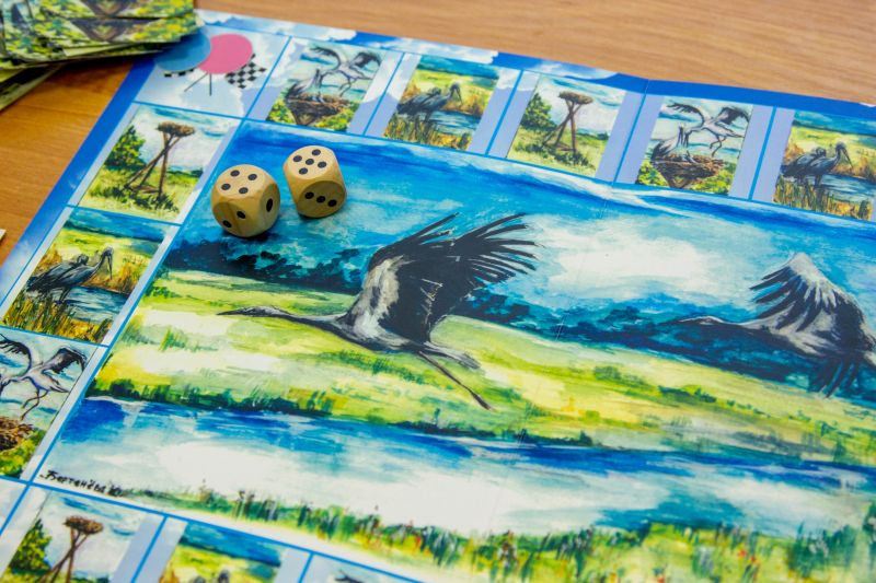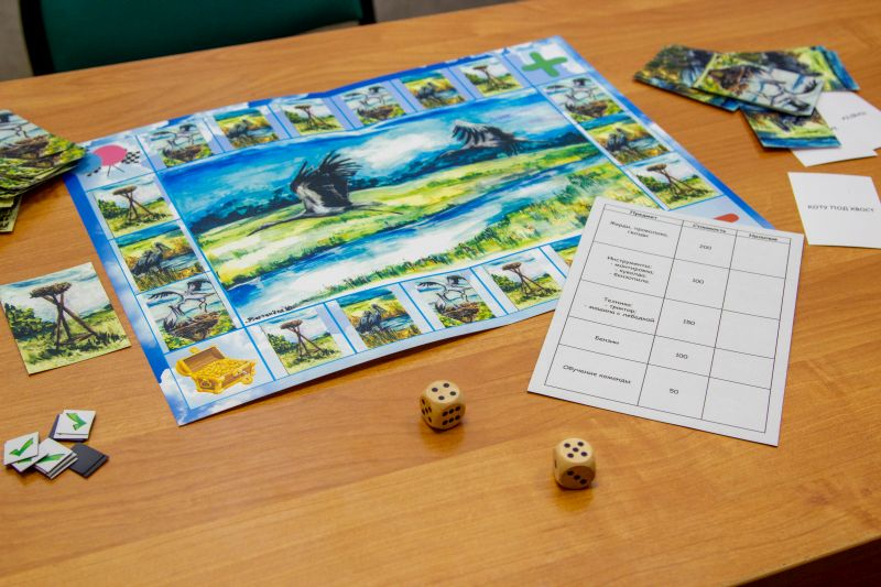 — Игра состоит из поля, кубиков, фишек, карточек с разными заданиями. Выполняя их, игроки получают условные единицы, на которые можно приобрести все необходимое для установки аистиной опоры — эти пункты отмечаются на таблице. Как только все поля на ней будут заполнены, команда выигрывает, а у птицы появляется новый дом, — объясняет правила игры ее автор.