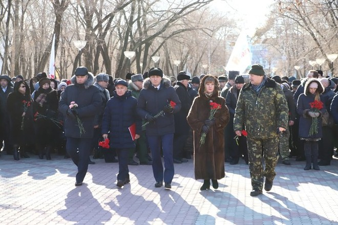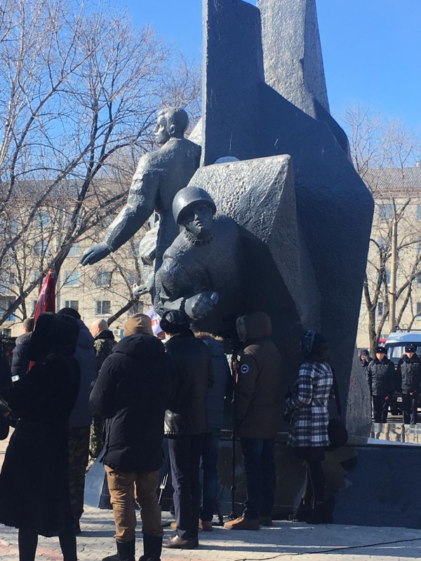 памятнику Воинам-интернационалистам в парке Мира на общегородском митинге.