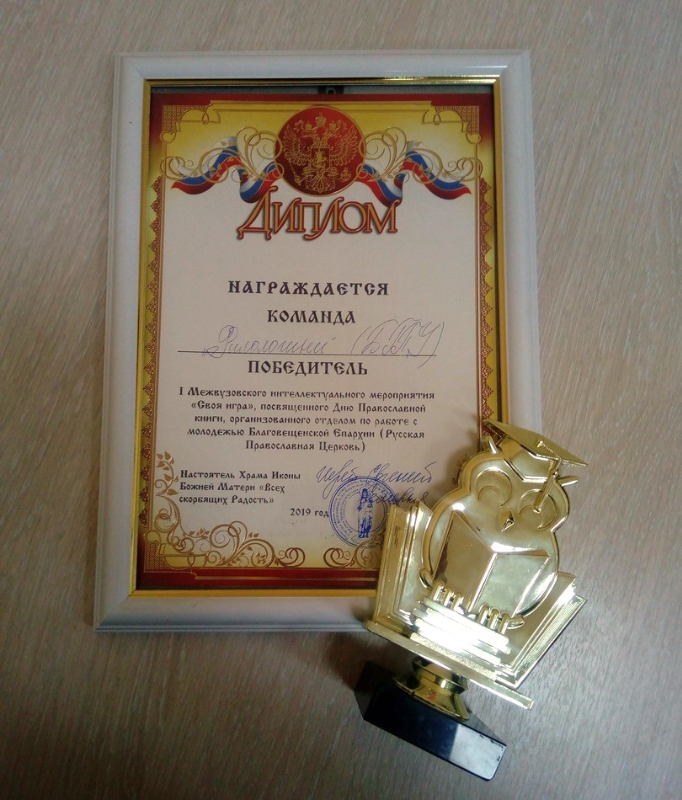 25 марта студенты историко-филологического факультета приняли участие в первом межвузовском интеллектуальном мероприятии "Своя игра", посвященном Дню Православной книги. В игре также приняли участие команды АГМА и ДВОКУ им. К.К. Рокоссовского. По результатам двух этапов конкурсных испытаний, участники от БГПУ заняли почетное первое место.