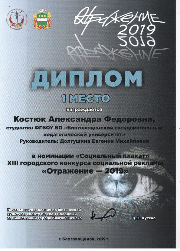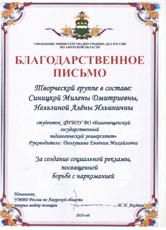 1. Творческая группа студентов ИПФ, Нельзина Алена и Синицкая Милена 1ИД, за создание социальной рекламы,