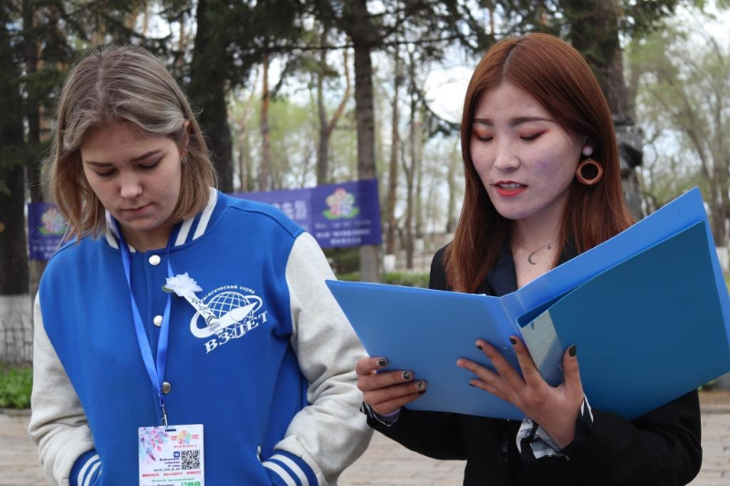 делегации организаторы на территории Хэйхэ – сотрудники и студенты Хэйхэского