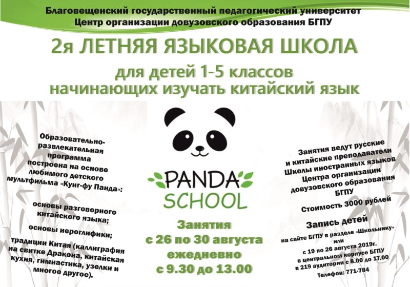 Стоимость участия ребенка в Летней языковой школе «Panda school» — 3000 рублей