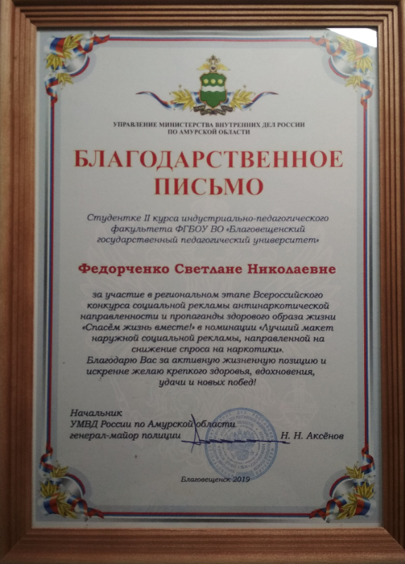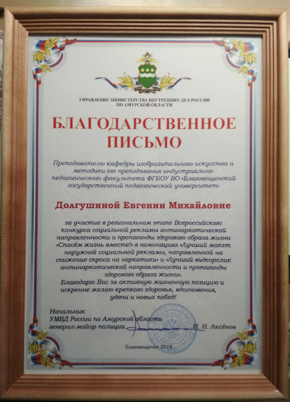 С 15 января по 20 февраля 2019 года Управлением по контролю за оборотом наркотиков УМВД России по Амурской области проводился региональный этап Всероссийского конкурса социальной рекламы антинаркотической направленности и пропаганды здорового образа жизни «Спасём жизнь вместе», направленный на привлечение общественного внимания к проблеме незаконного оборота наркотиков.