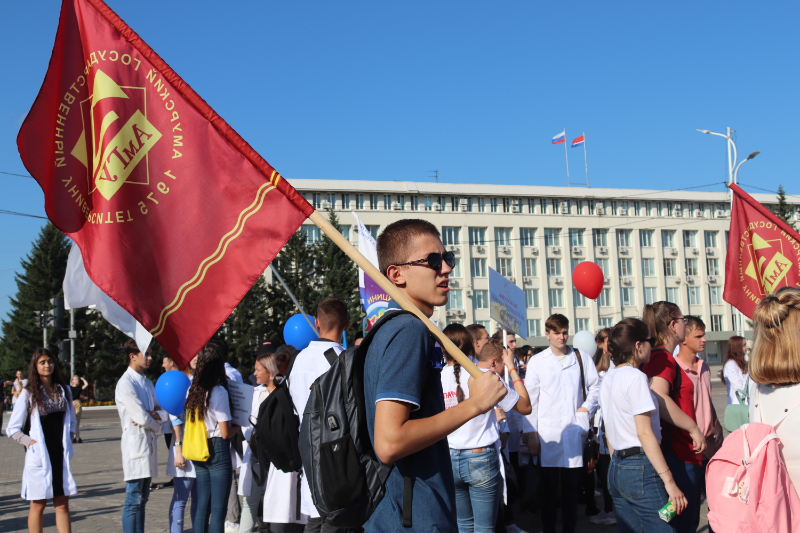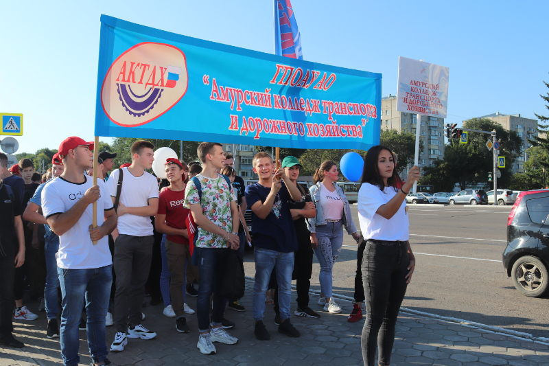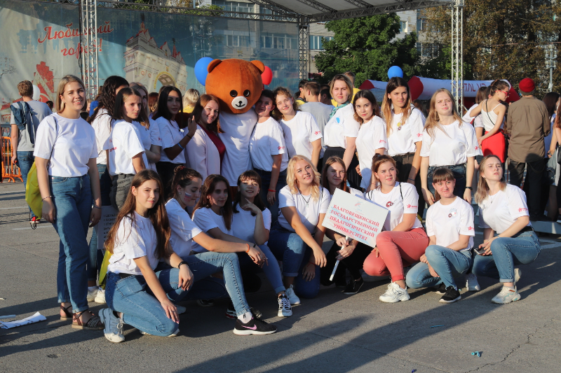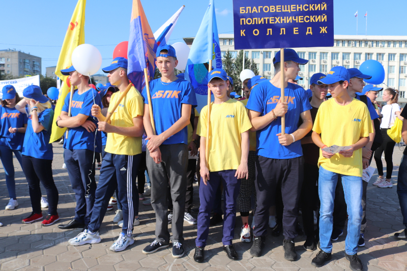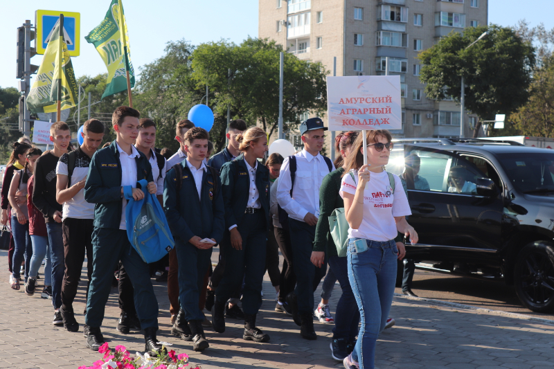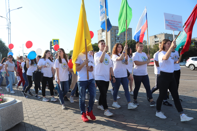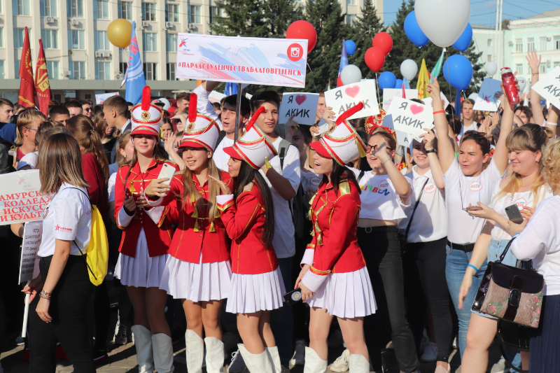 6 сентября Благовещенск присоединился к масштабному празднику, объединившему молодежь всей России - Параду российского студенчества, организованному БГПУ при поддержке отдела по делам молодежи администрации г. Благовещенска. В этом году мероприятие собрало более 600 участников. Массовое шествие студентов вузов и ССУЗов амурской столицы сопровождалось конкурсами, розыгрышем призов и завершилось общегородской студенческой линейкой. На линейке перед первокурсниками выступили участники студенческих творческих объединений вузов и колледжей города, а в завершении мероприятия первокурсники прошли посвящение в студенты, принеся клятву российского студента.