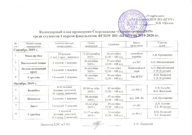 С сентября по октябрь 2019 года в БГПУ пройдет традиционная спартакиада "Первокурсник".