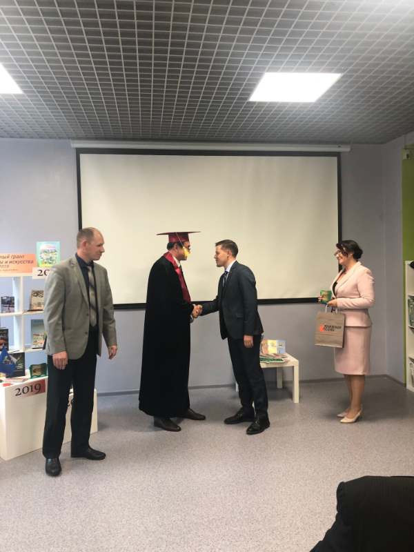 23 сентября в рамках литературного ивента «Книжная осень» в молодежной библиотеке имени Чехова г. Благовещенска проректор по науке БГПУ А. А. Барбарич вручил диплом почётного профессора БГПУ давнему другу нашего университета профессору Ли Яньлину - профессору русского языка и литературы Цицикарского университета, директору Центра по изучению культуры русских эмигрантов в Китае, кавалеру российского Ордена дружбы, иностранному члену РАН, члену Союза писателей России.
