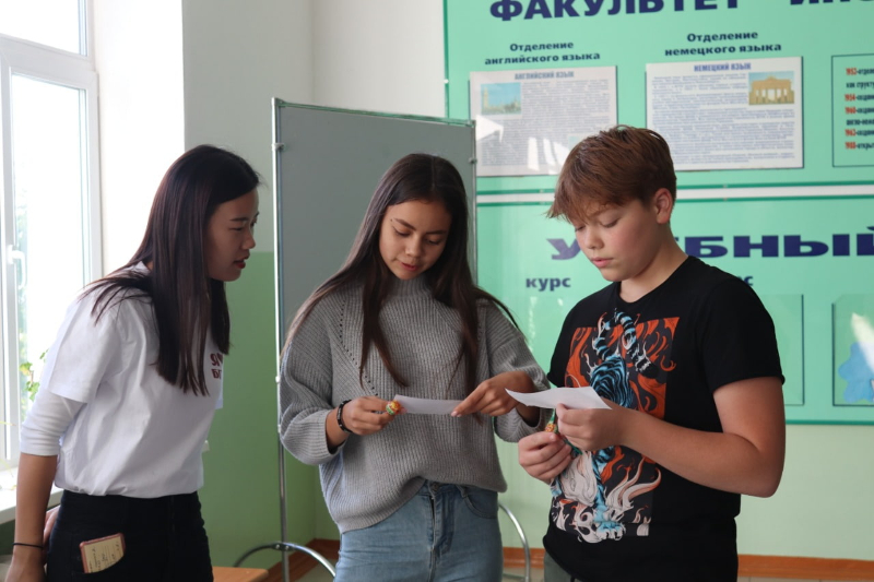 24 сентября в БГПУ прошла игра-вертушка "7 драгоценностей китаиста", организованная международным отрядом "Иван и Ван" для учеников школы №14 г. Благовещенска. Ребята с достоинством справились со всеми испытаниями. Угадать сорт чая с закрытыми глазами - почему нет! Прочитать скороговорку с леденцом во рту - "та жапрошто"! Перевести текст, который первый раз видишь - 没有事儿!