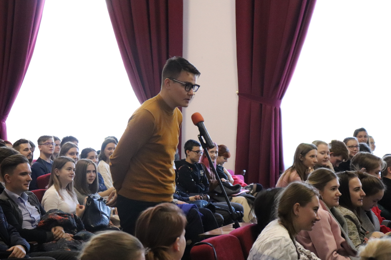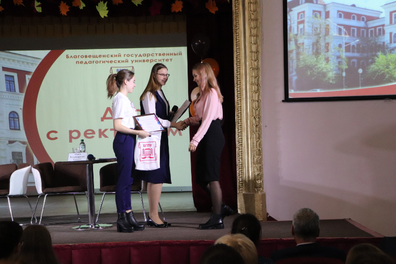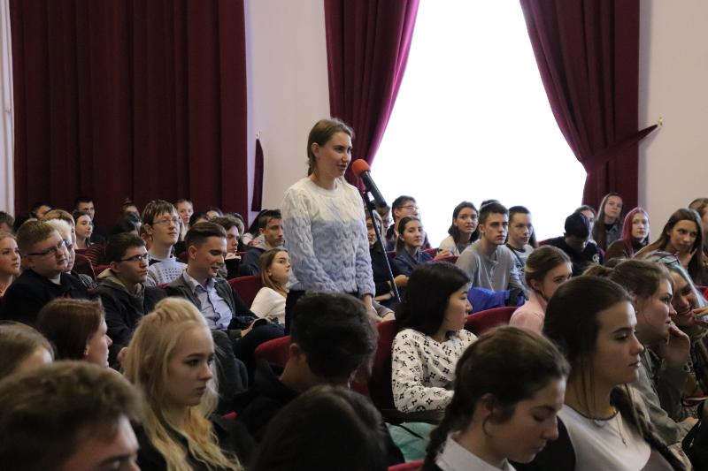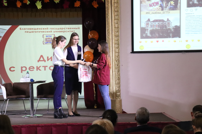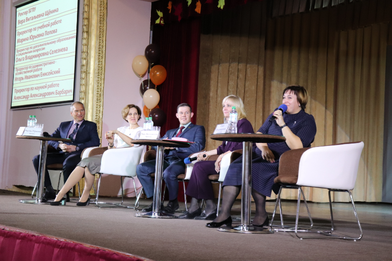 17 октября в 9.40 в актовом зале БГПУ прошло традиционное мероприятие для студентов 1 курса «Диалог с ректором». Модерировала диалог Фомина Татьяна, член студенческой комиссии по